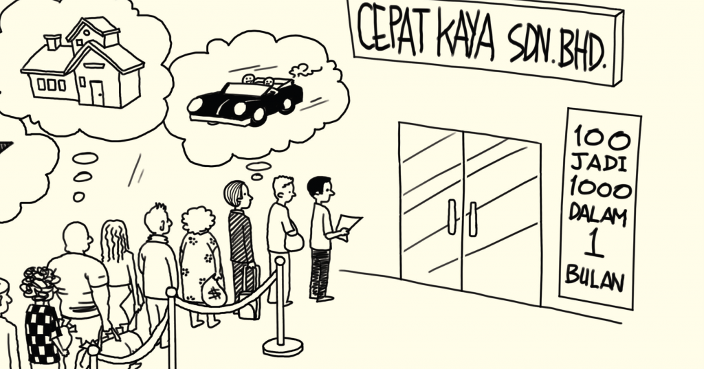 Tujuan sebenar skim cepat kaya adalah untuk membolot segala harta yang ada sebanyak mungkin melalui mangsa-mangsa yang terlibat. Berhati-hatilah dengan perniagaan yang menunjukkan petanda-petanda seperti ini kerana anda mungkin terjerumus dengan skim cepat kaya.